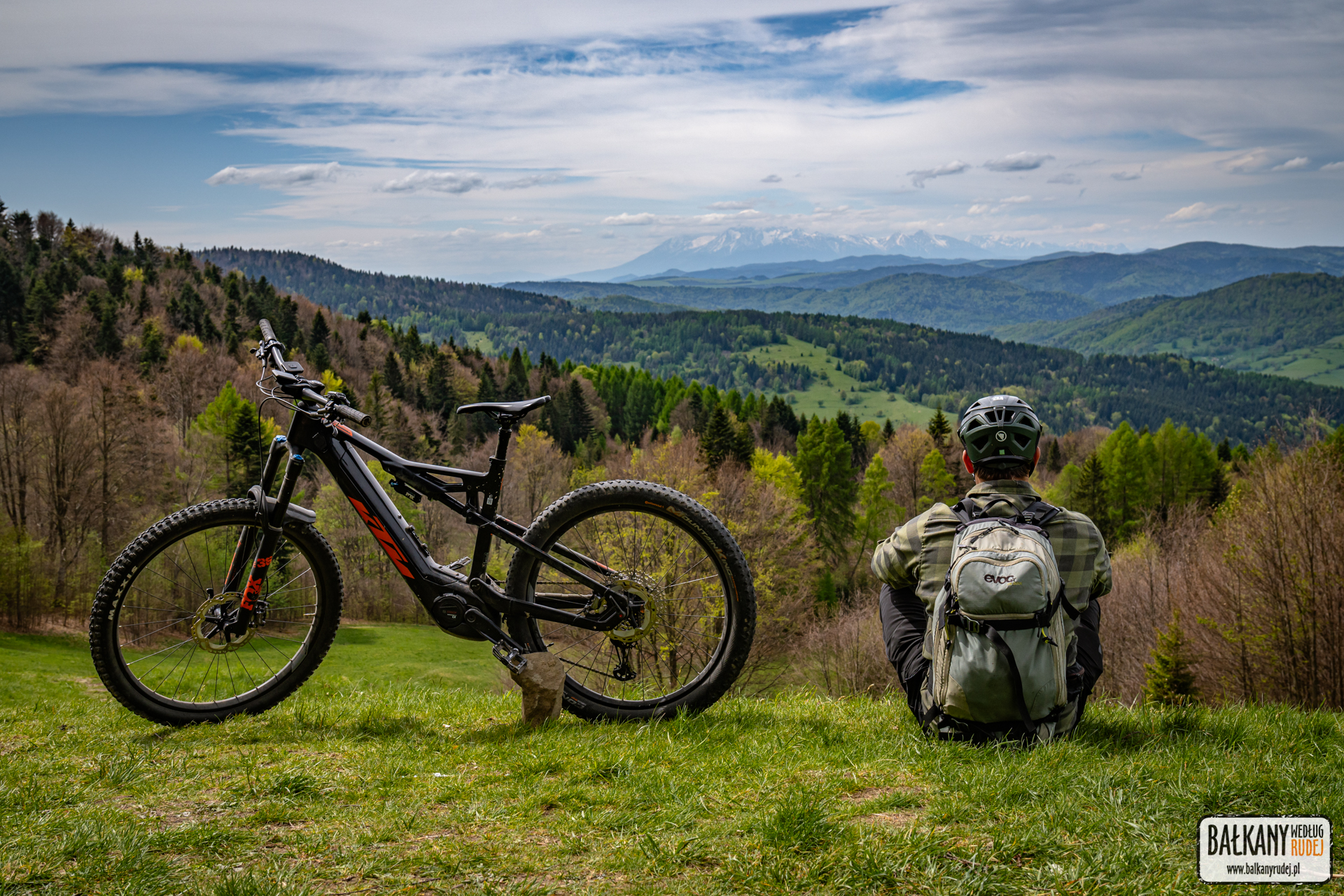 Ponieważ w drugiej połowie dnia pogoda zafundowała nam słońce i błękit nieba, postanowiliśmy nieco rozszerzyć naszą trasę. Zabrałam Marka na zielony szlak, powyżej wsi Sulin, który pokonywałam poprzedniego dnia. Z doliny Popradu musieliśmy więc wyjechać na przełęcz ponad wsią, skąd polanami przejechaliśmy na wzgórze z krzyżem (na mapy.cz figuruje jako „Nad modrinami”). Podziwialiśmy stamtąd Tatry i okoliczne sielankowe pagórki. Po sesji zdjęciowej zaczęliśmy powrót do Piwnicznej-Zdrój. Trzymaliśmy się zielonego szlaku, który mniej lub bardziej stromo sprowadził nas nad Poprad. A dalej to już tylko przejazd do Piwnicznej i mogliśmy udać się na zasłużony odpoczynek.