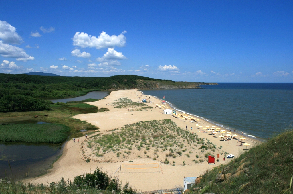 Co do plaż w tym rejonie, to ja bardzo lubię plażę w Sinemorcu (uwaga – są dwie, więc chodzi o tą północną po lewej stronie od miasteczka). gdzie do morza wpada rzeka Veleka, a plaza usytuowana jest na wąskim cyplu pomiędzy nimi. Więc jest okazja kąpać się w morzu, po czym po 40 m przejścia plażą wskoczyć do słodkiej wody w rzece