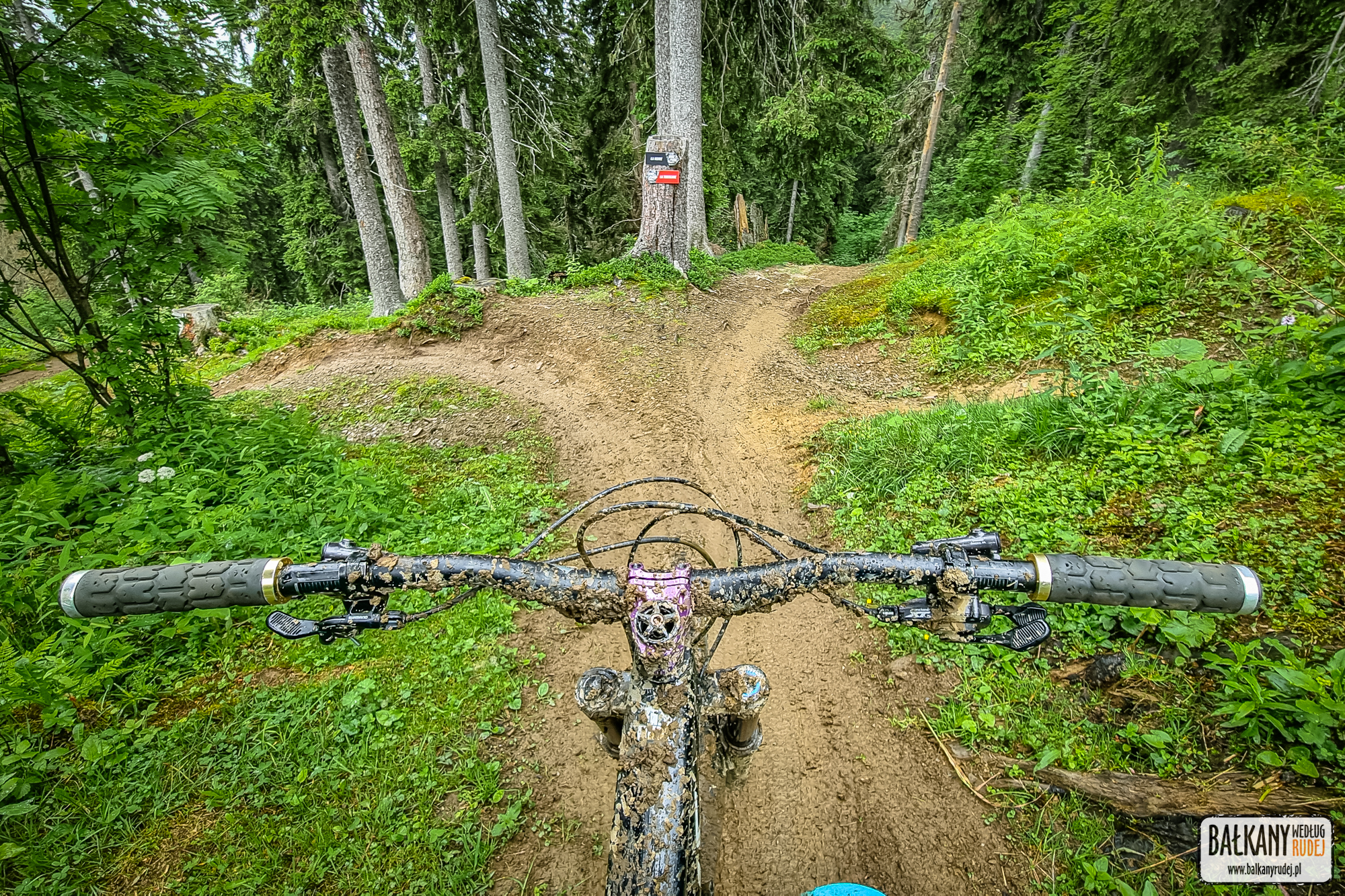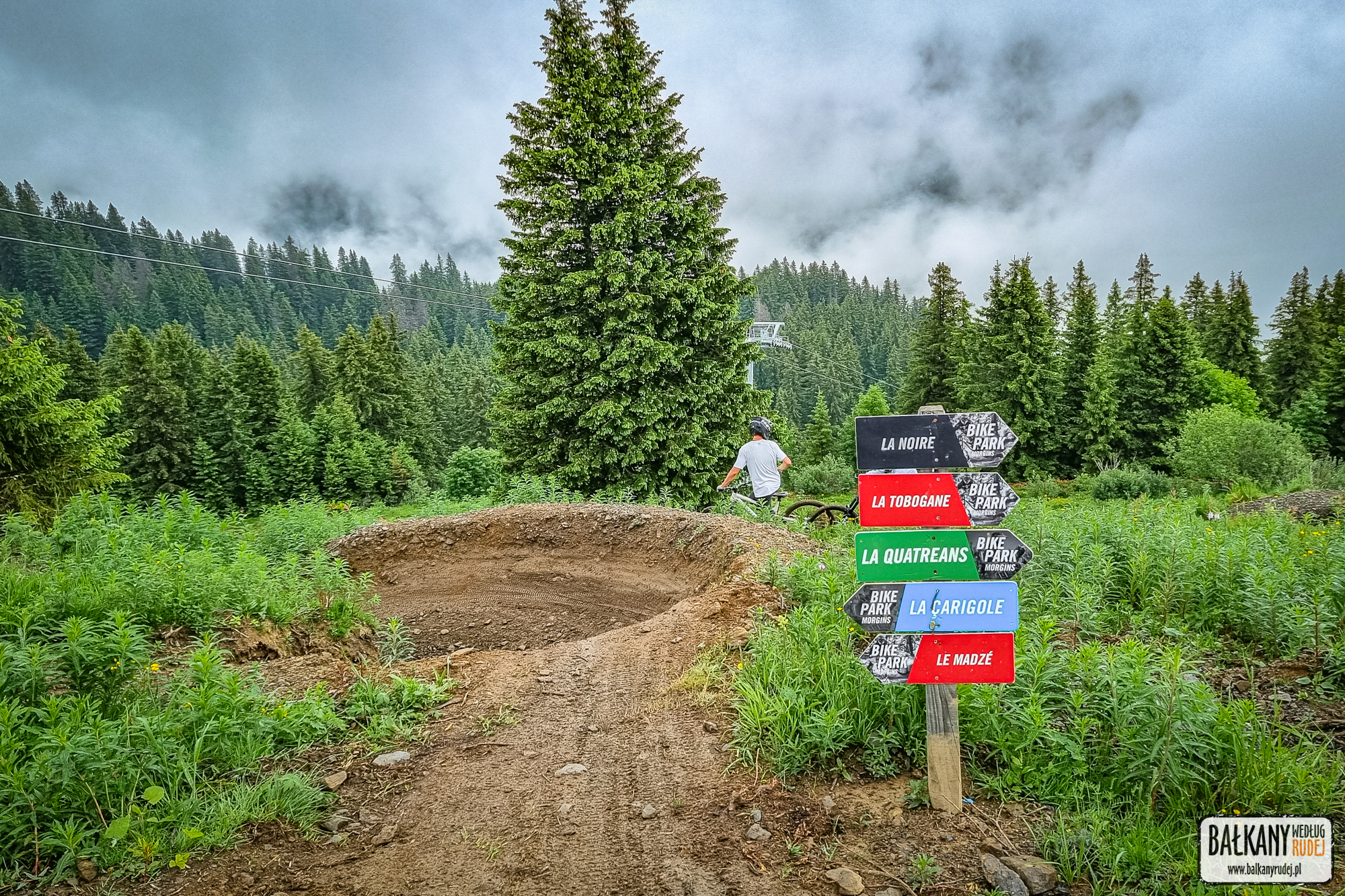 Bike Park w Morgins był dla mnie nowością, bo choć istniał tu już lata wcześniej, to podczas naszej pierwszej wizyty w roku 2023 był zamknięty z powodu wymiany wyciągu. Obecnie działa tu już nowoczesna kolej gondolowa oraz sam bike park. Niestety podczas naszej planowej wizyty, pogoda nam nie bardzo dopisała, ale pomimo mocno mokrych i błotnistych warunków udało mi się sprawdzić wszystkie dostępne warianty zjazdów. Obecnie jest tu 5 tras. Nie jest to może imponująca liczba w porównaniu do innych okolicznych miejscówek, ale warianty te można fajnie mieszać i łączyć ze sobą, co daje dużo możliwości ciekawych przejazdów. Miejsce, podobnie jak i Chatel, przeznaczone jest raczej dla zaawansowanych rowerzystów. Nawet na najprostszej trasie zielonej napotkamy wysokie i dosyć ostro profilowane zakręty. To właśnie z nich obecnie miejsce jest najbardziej znane i chętnie odwiedzane również przez rowerowych profesjonalistów. Więcej o bike parku, już niedługo przeczytacie w osobnym artykule na portalu 43ride.