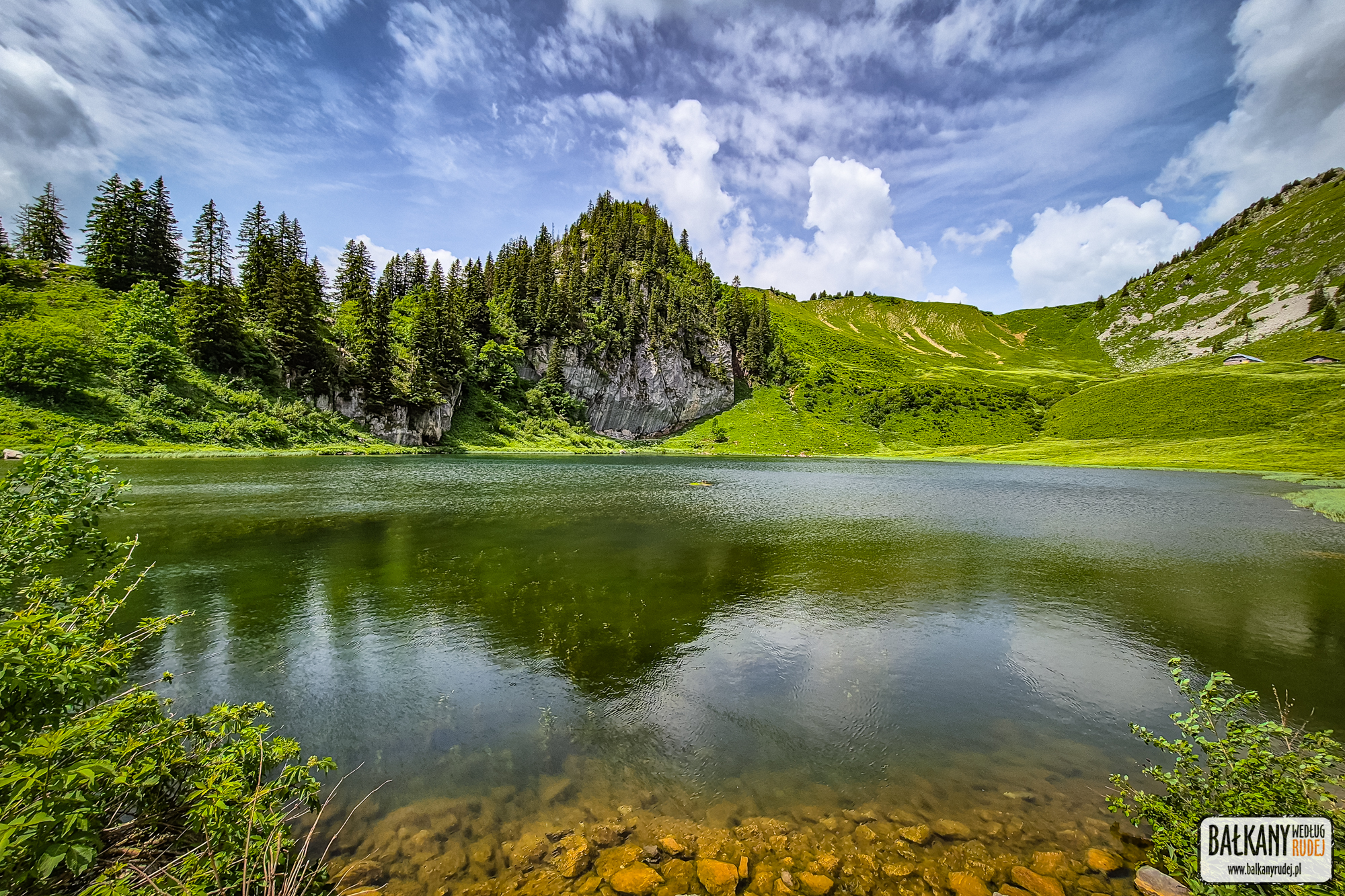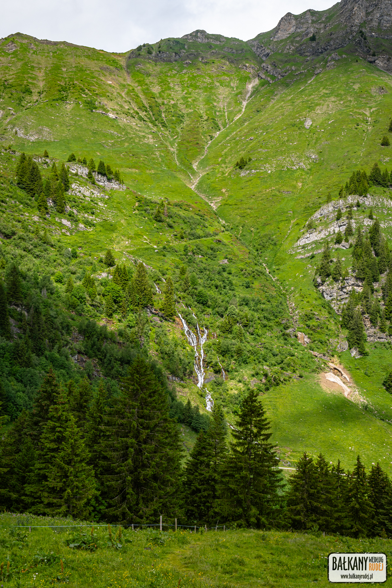 Pięć kilometrów od miejscowości Abondance, przez którą przejeżdża się w drodze z Morzine do Chatel lub na odwrót, znajduje się urocze, niewielkie jezioro. Lac des Plagnes, bo o nim mowa, to sztuczny zbiornik, będący też największym akwenem w dolinie Abondance. Wokół niego poprowadzona jest przyjemna ścieżka spacerowa, przy której znaleźć można ławeczki czy miejsca piknikowe. Okolice jeziora to też dobry punkt wypadowy w otaczające go góry. Z racji niepewnej, mocno deszczowej pogody, zdecydowaliśmy się na krótszy wariant wycieczki, do schroniska Tindarets (Refuge des Tinderets). Trasę rozpoczęliśmy przy południowym brzegu jeziora, gdzie dość stroma ścieżka przeprowadziła nas wzdłuż wodospadu i kaskad, malowniczo spływających przez las, po zmurszałych kamieniach. Dalej szlak wyprowadził nas na rozległą łąkę otoczoną górskim zboczami, na których pasły się krowy. Końcowe podejście do schroniska nie jest zbyt strome. Refuge des Tinderets to niewielki, kamienny, uroczy budynek. Niestety nie mieliśmy zbyt wiele czasu, by nacieszyć się roztaczającymi się stamtąd widokami. Przyszła gigantyczna ulewa, która sprawiła, że niemal biegiem popędziliśmy z powrotem do auta. Trasa ta miała ok. 6 km długości.