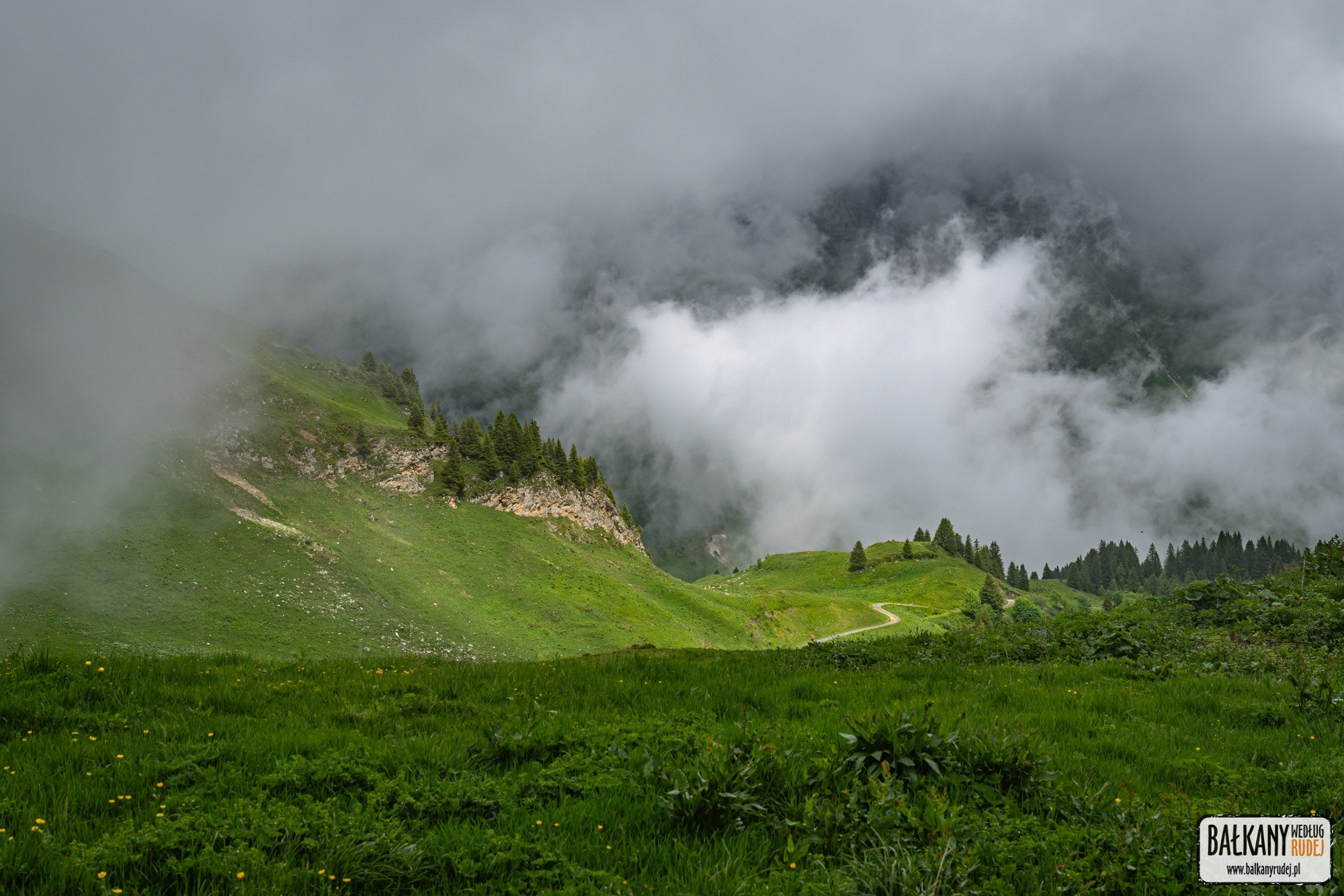 Wycieczkę tę realizowałam wraz z moim przyjacielem Maćkiem, który wraz z trójką innych, naszych znajomych przyjechał w tym samym czasie do Francji. Plan na wycieczkę był prosty – zaliczyć jak najbardziej widokową trasę. Pogoda miała dla nas jednak inne plany. Trekking rozpoczęliśmy w centrum Morgins, skąd udaliśmy się do doliny Vieze de Morgins. Trasa wzdłuż rzeki była prosta, miła i przyjemna. Później czekało nas podejście przez Cantine La Tovassière aż na przełęcz – Col des Portes du Soleil (1950 m n.p.m.). To właśnie jej cały region Portes du Soleil zawdzięcza swoją nazwę. Niestety gdy tylko znaleźliśmy się na grzbiecie… towarzyszyła nam chmura. Widoczność była zerowa, a dodatkowo co jakiś czas zaczynało coś siąpić. Przeszliśmy się nawet na przełęcz powyżej Lac Vert, ale jeziora również nie zobaczyliśmy. Postanowiliśmy więc wracać w stronę Morgins. Przyjemnym, trawiastym grzbietem dotarliśmy do górnej stacji kolei gondolowej (La Foilleuse), wzdłuż której rozciągają się trasy bike parku. Maciek na dół zjechał koleją, ja natomiast zeszłam o własnych siłach. W sumie zrobiłam 21 km.