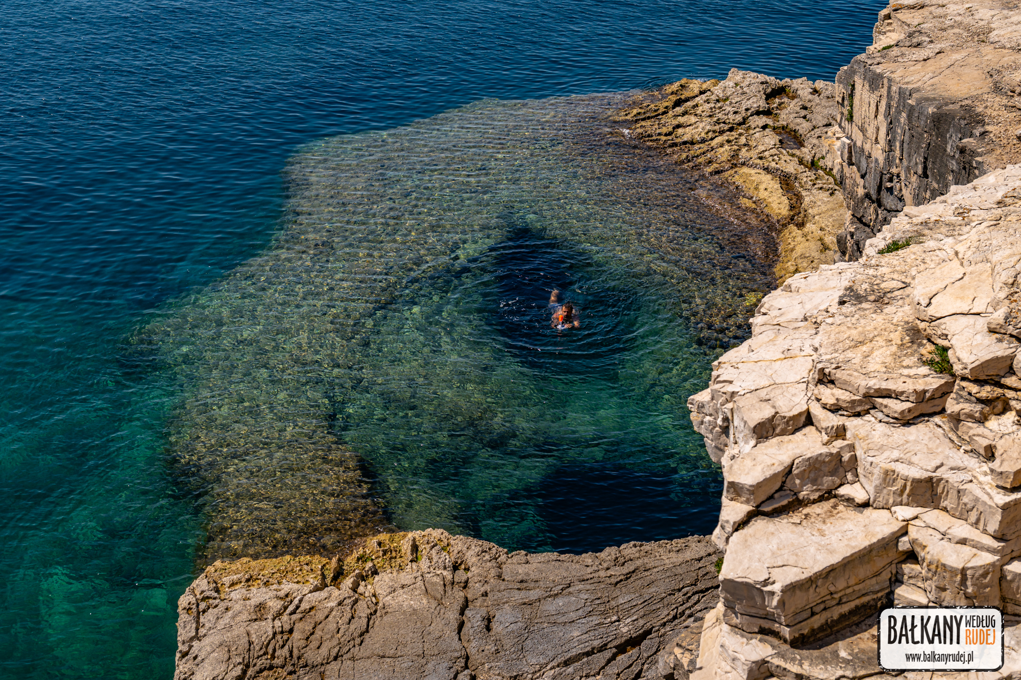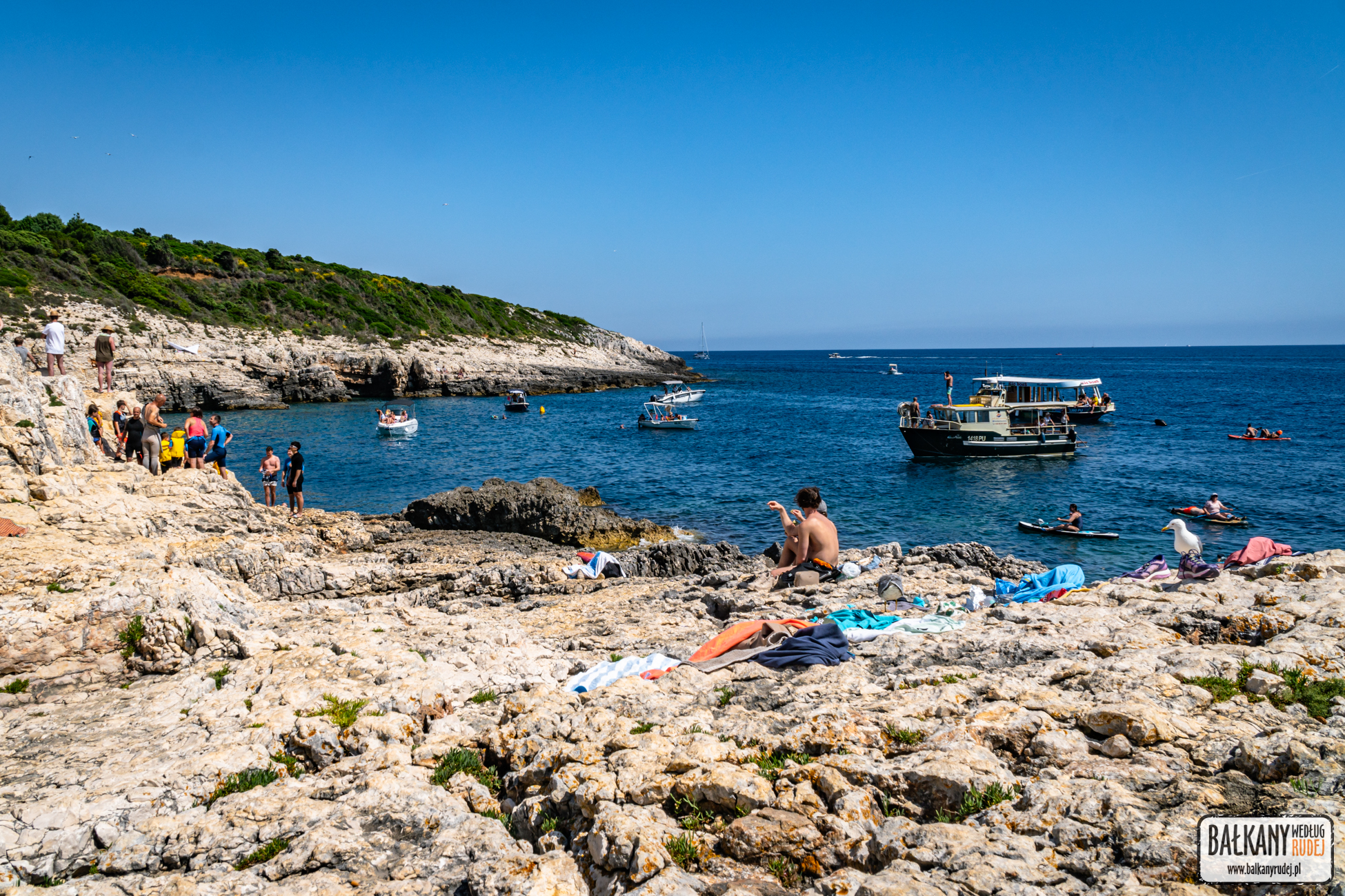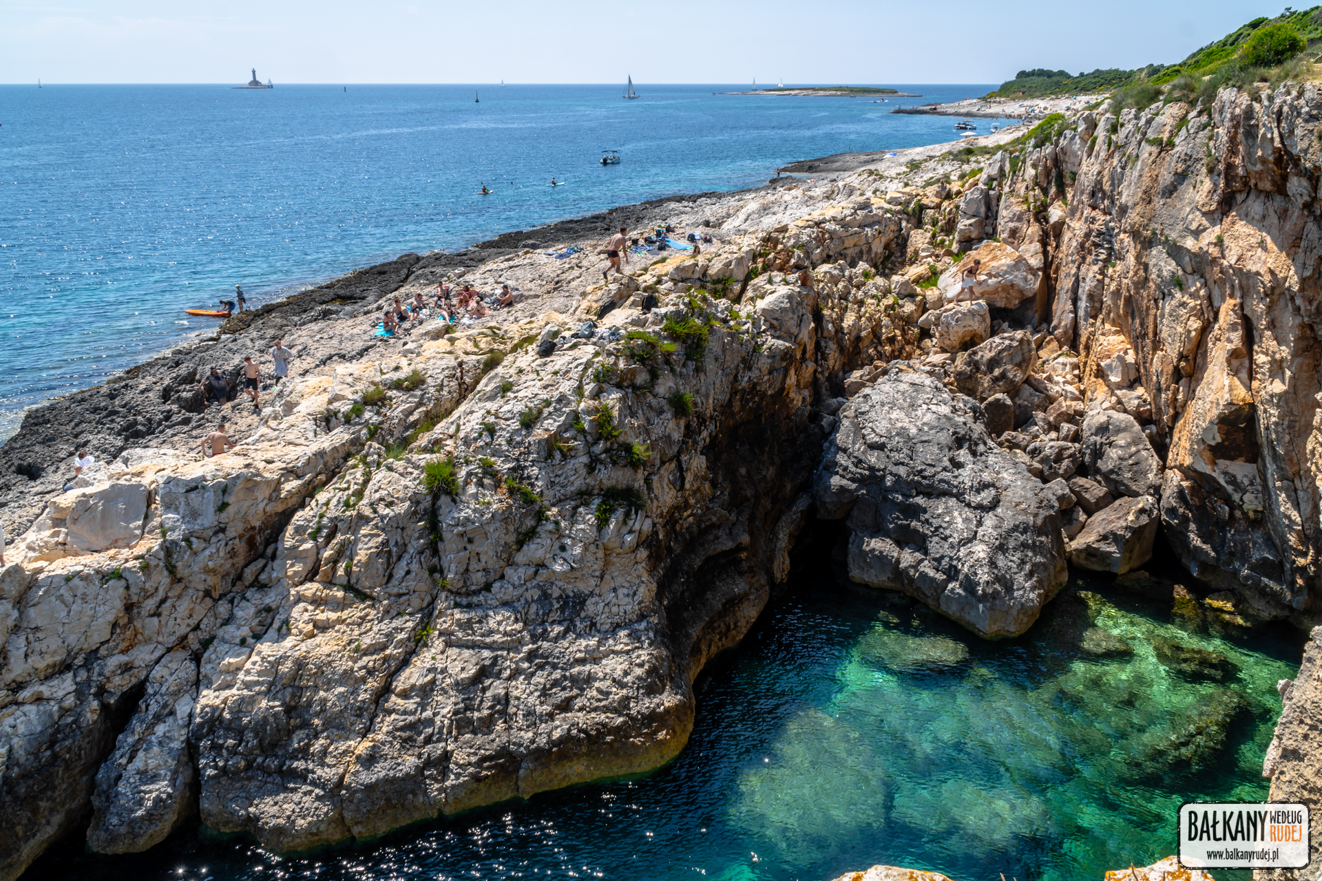 Na zachód od centrum Puli, kawałek za kampingiem Stoja, wybrzeże Adriatyku kryje kilka naprawdę wyjątkowych miejsc. Numerem jeden jest bez wątpienia mała, schowana pośród drzew i skał Ciklonska plaža. W sezonie bywa tam tłoczno, ale poza jego szczytem można się tam cieszyć kameralną atmosferą. Idąc dalej na zachód mija się kolejne większe lub mniejsze klify, w tym Galebove stijene czy morskie jaskinie. Okolica ta cieszy się dużą popularnością wśród kajakarzy oraz… skoczków do wody. Za każdym razem, gdy tam jesteśmy, trafiamy na śmiałków, którzy z wysokich klifów skaczą w ciemną toń Adriatyku.