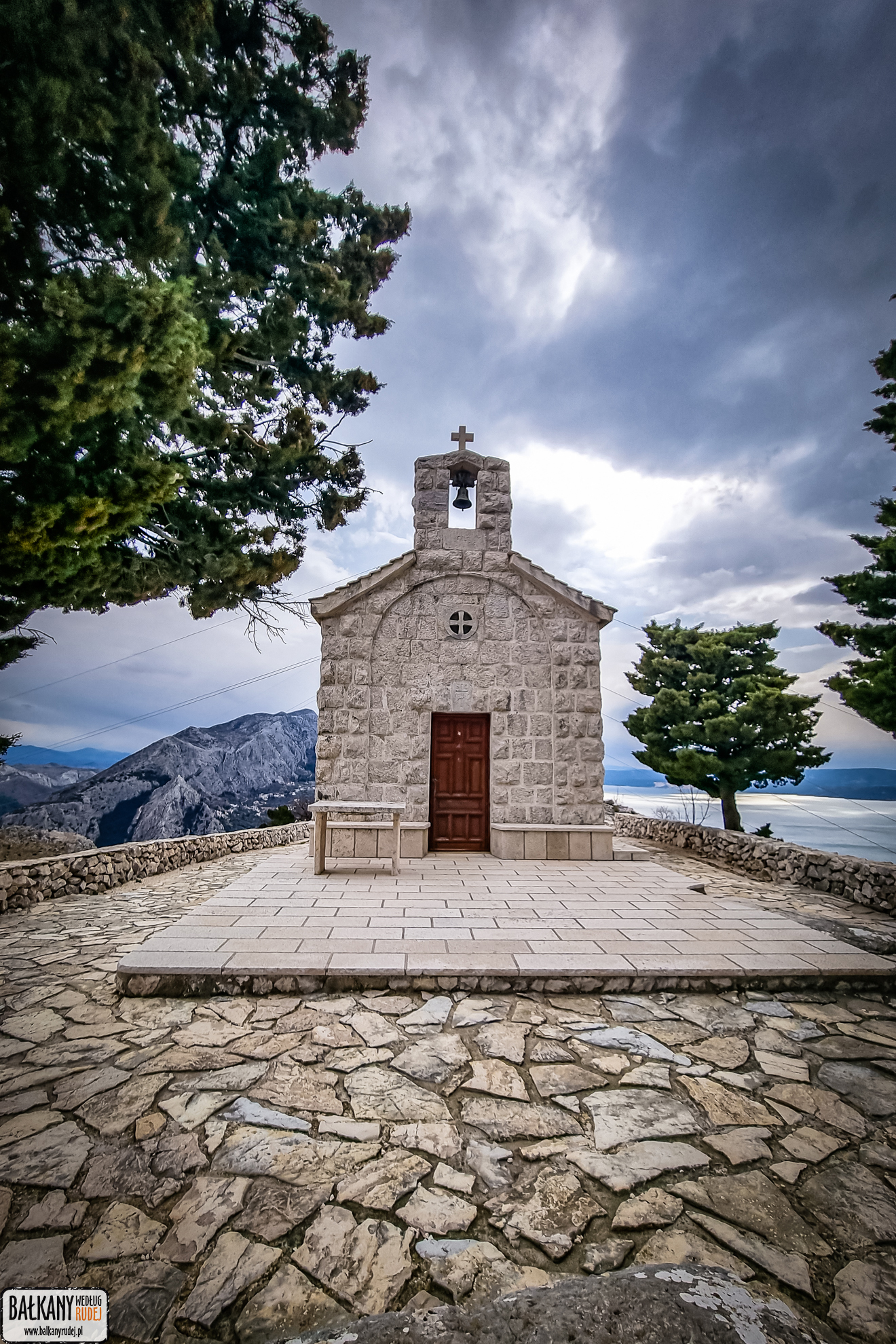 Po dotarciu do miejscowości skręcam na wschód szlakiem, który wiedzie do malowniczo położonego kościółka Gospe od Sniga. Poniżej niego, w skalnej wnęce znajduje się kapliczka z figurą Chrystusa, którą w 2001 roku ufundowali Polacy. O ile niżej szlak uroczo trawersował, o tyle ścieżka prowadząca do kościółka jest naprawdę stroma. Przy niewielkiej, białej świątyni spędzam dosłownie chwilę i zaczynam zbiegać na północną stronę pasemka.