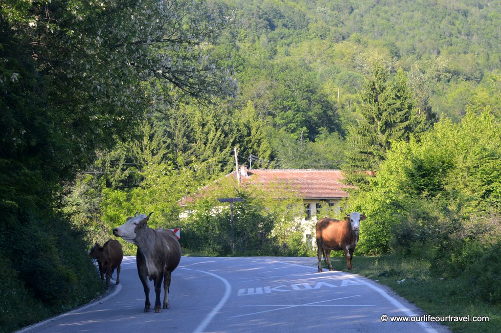 Mimo, że dystans jest krótki to trzeba liczyć się z tym, że jego pokonanie zajmie przynajmniej dwie godziny. Jak prawie wszędzie w Bośni drogi prowadzą przez góry i kaniony i są bardzo kręte. Poza tym częstym widokiem na drogach są zwierzęta. Głównie na bocznych drogach, ale my mieliśmy szczęście natknąć się na spacerujące po szosie krowy w kilku miejscach pomiędzy Fočą a Tjentište.