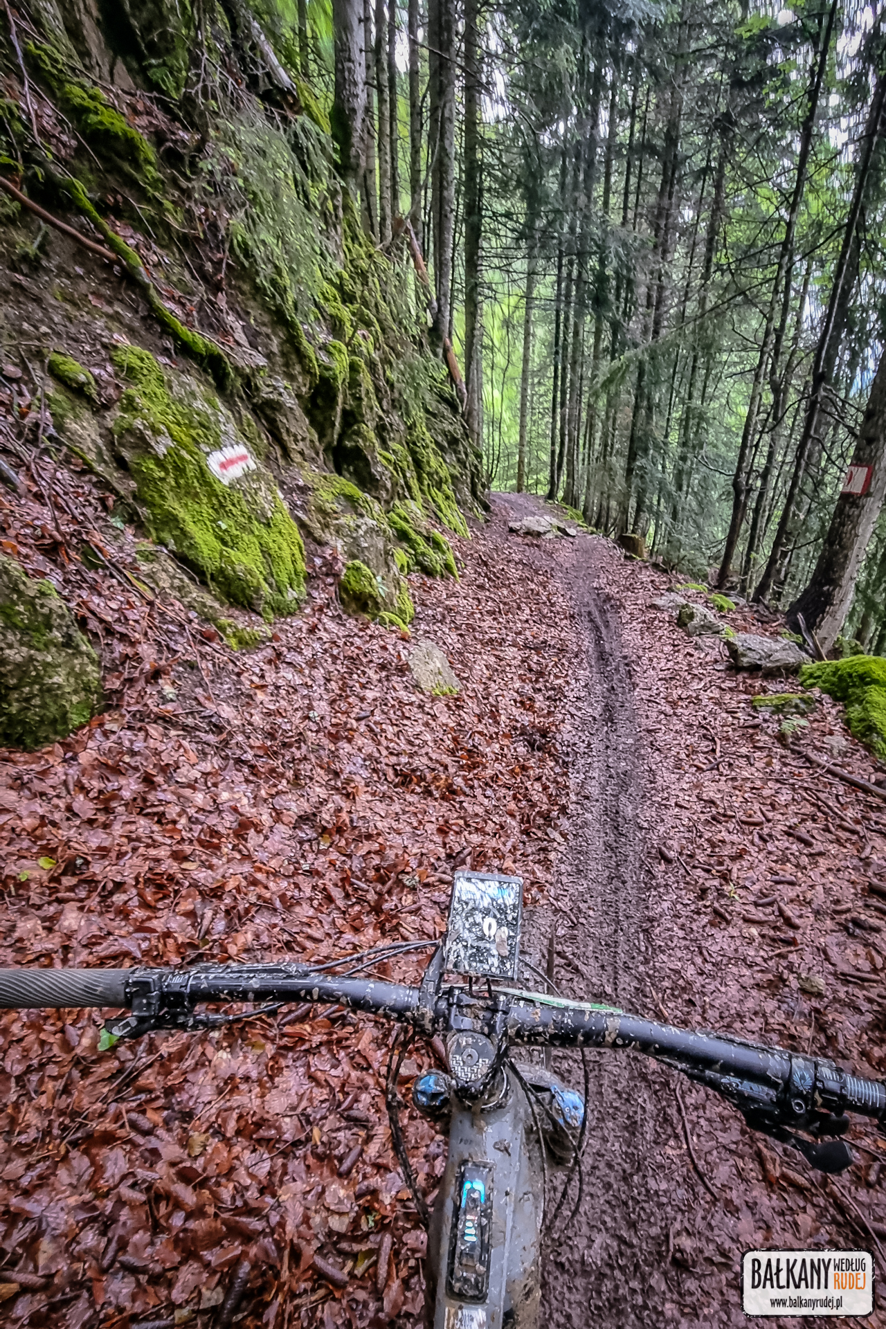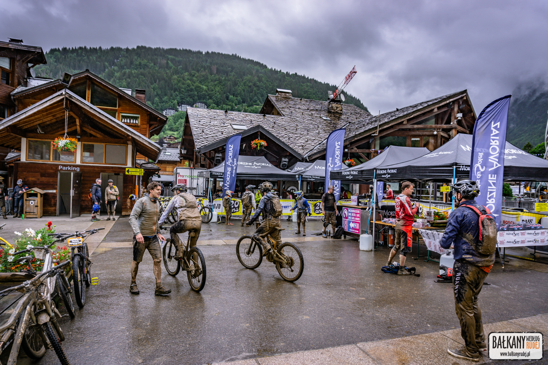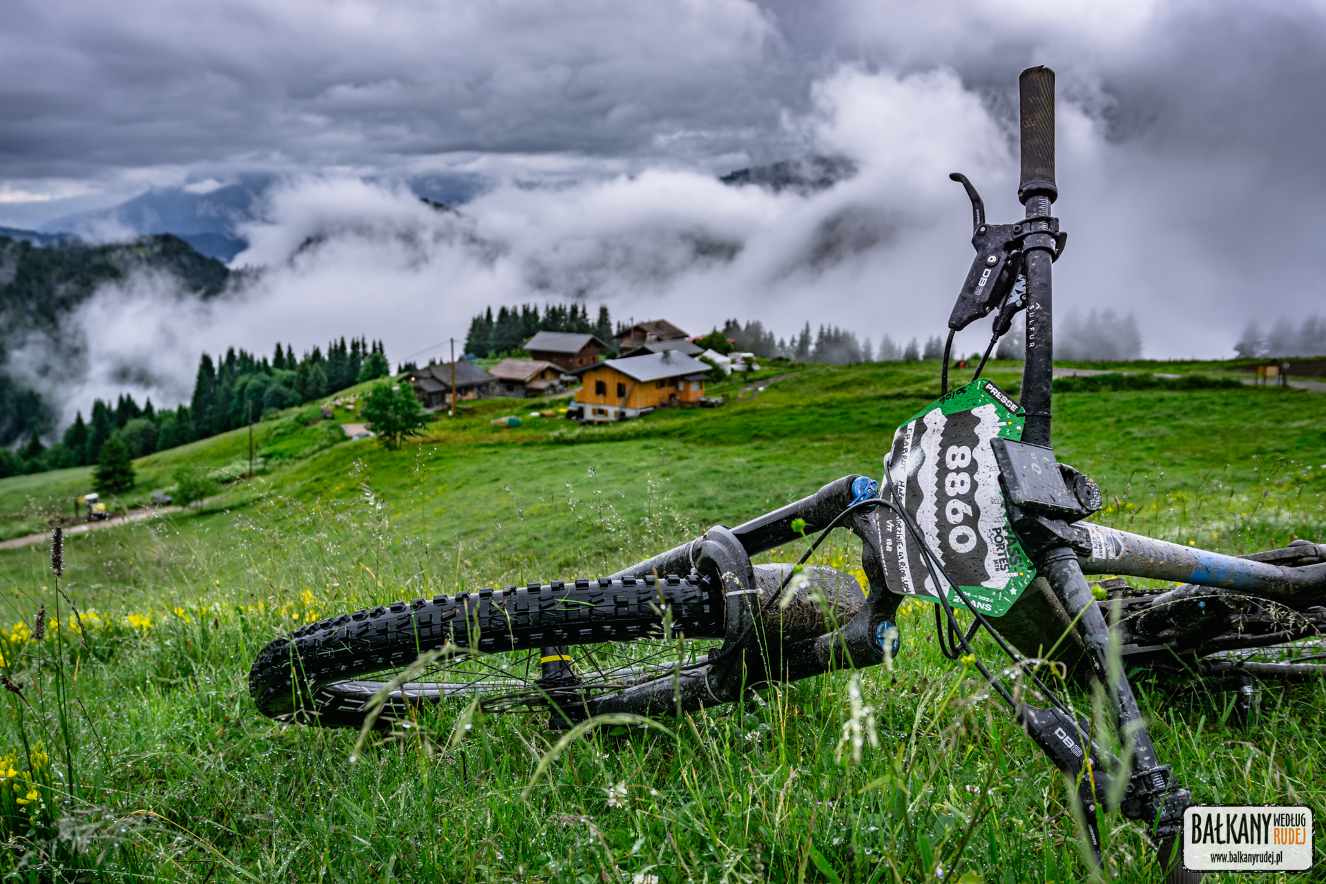Z Les Gets koleją gondolową wyjechałem w okolice szczytu Mont Cherry. Trasa nie wyjeżdżała na samą górę, ale okrążała szczyt najpierw szutrem, a następnie bardzo ciekawym singlem, który zjeżdżał do przełęczy Col de l’Encrenaz. Stamtąd wspinaczka na dziką przełęcz Col de la Basse i zjazd przyjemnym szlakiem w stronę Les Praz. Warunki tego dnia były mocno wymagające i na stromiznach ciężko było wyhamować, ale zabawa była przednia. Kolejny był bardzo fajny, przygotowany zjazd w stronę Le Plan de Criou. Chętnie tu kiedyś wrócę w warunkach na sucho i z lepszą widocznością. Po tej ciekawej mieszance szutrów, szlaków i singli dotarłem do doliny Graydon oraz do klimatycznej miejscowości, w której zorganizowany był bufet. Tego dnia zdecydowanie przydało się ciepłe jedzenie i napoje.