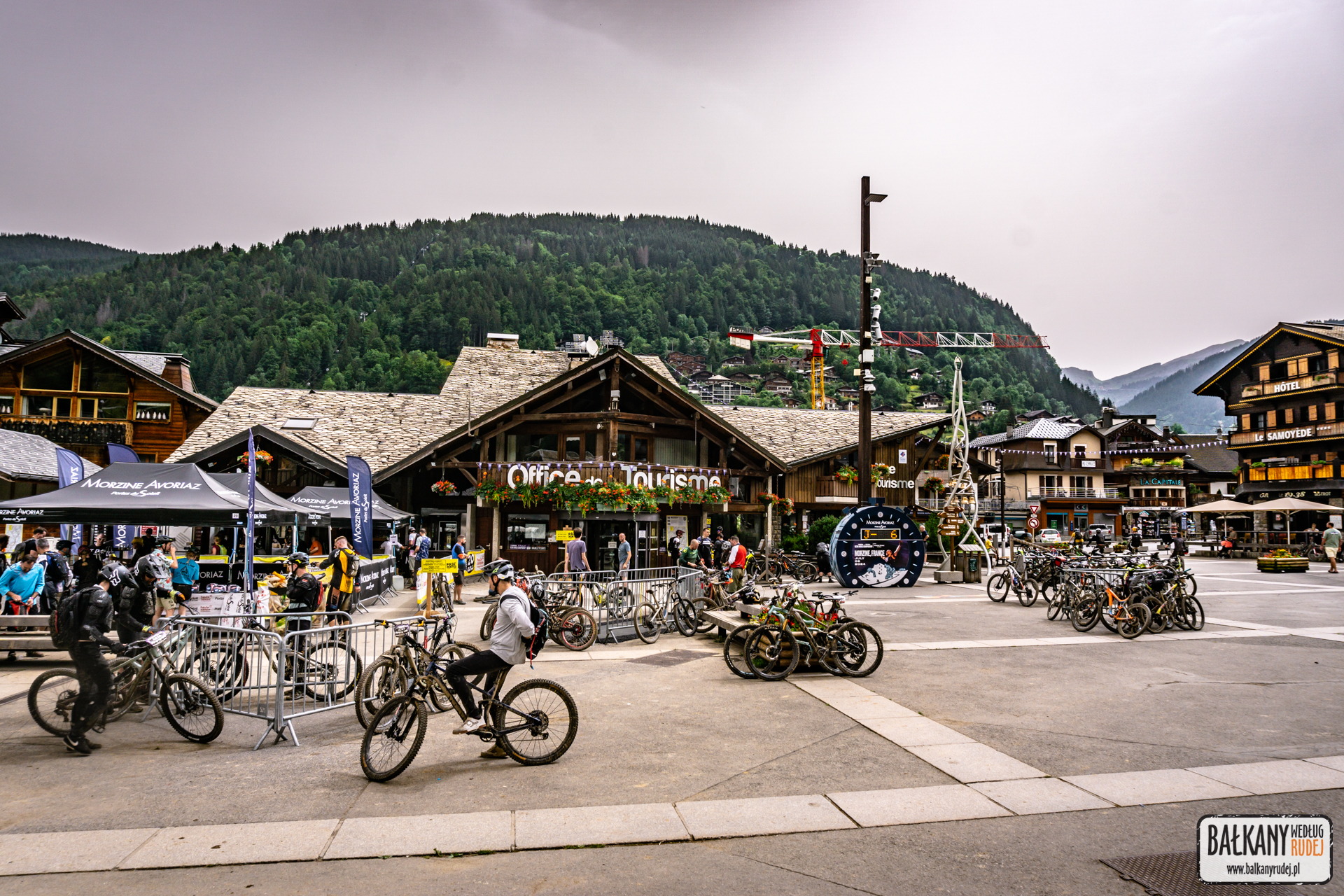Niestety niedziela przyniosła nam deszcz i chmury. Padało całą noc i nie zachęcało to do wyruszenia wczesnym rankiem. Do wyboru były 3 warianty: 40, 60 lub 106 km. Częściowo wspomagane wyciągami, ale zdecydowanie więcej bazowano tu na mocy e-bike. Na trasie zadbano też o dodatkowe punkty ładowania. Ja zdecydowałem się na środkowy wariant. Swoją pętlę rozpocząłem w Morzine, skąd szybko przedostałem się do Les Gets. Ten kawałek trasy pokrywał się z klasyczną wersją Pass Portes MTB. Po piwku w bufecie odbiłem na pętlę E Pass Portes.