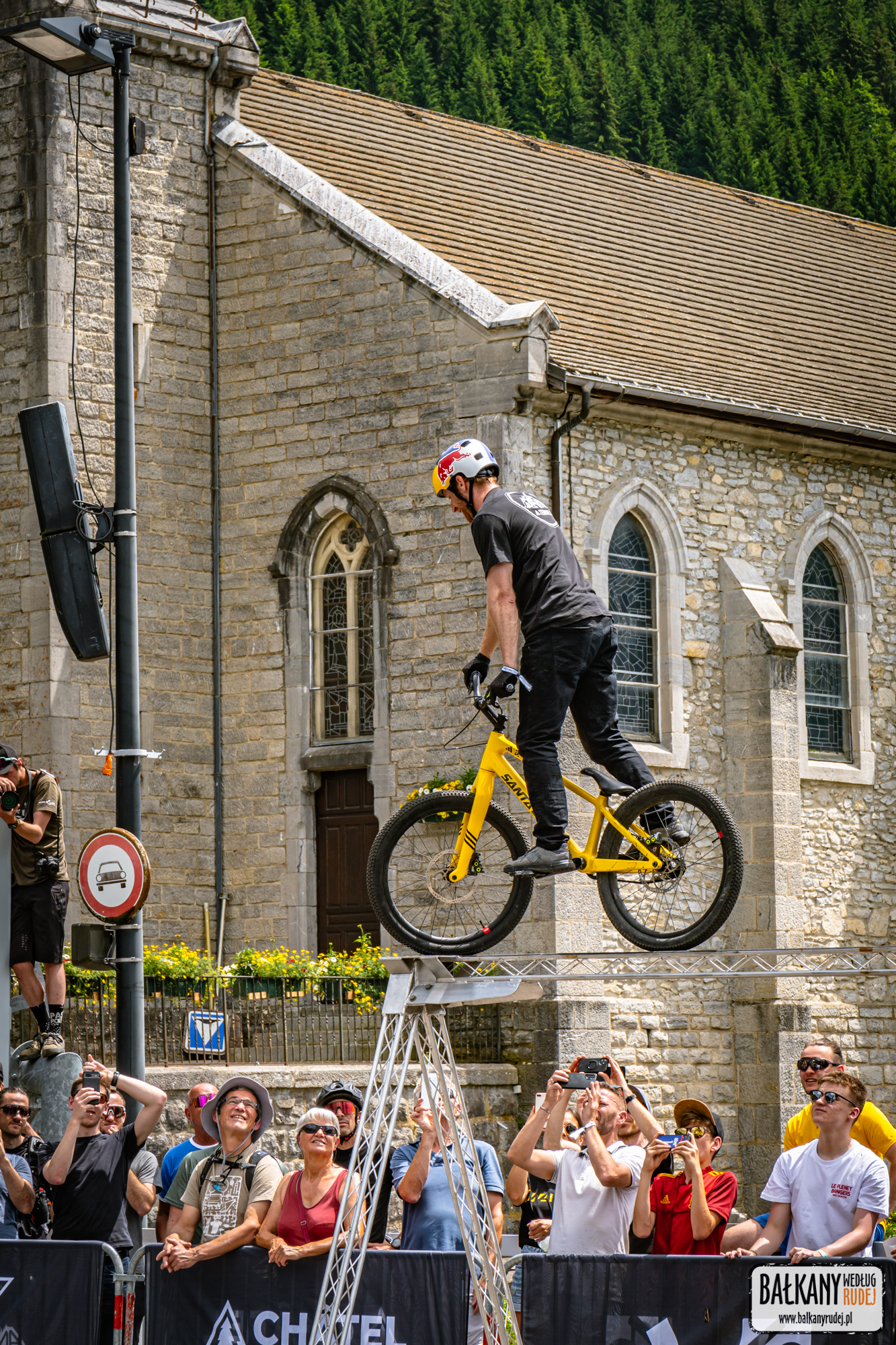 W Chatel obyło się też MTB Exibition, w trakcie którego wystawcy z różnych, rowerowych firm prezentowali swoje produkty. Jednak największą atrakcją były pokazy słynnego kolarza trailowego, czyli Danny MacAskilla, w ramach jego Drop and Roll Tour. Przez dwa dni można było podziwiać ewolucje, jakie Danny i jego ekipa wyczyniali na rowerach, przybić sobie z nimi piątkę i zrobić zdjęcia. Pass’Portes du Soleil jest więc nie tylko wydarzeniem, które ma na celu pokazać potencjał tego transgranicznego regionu, ale również integrować środowisko rowerowo-górskie. Jest to swoisty początek alpejskiego sezonu rowerowego. Wydarzenie organizowane jest co roku, a my mieliśmy okazję uczestniczyć w jubileuszowej 20. (!) edycji.