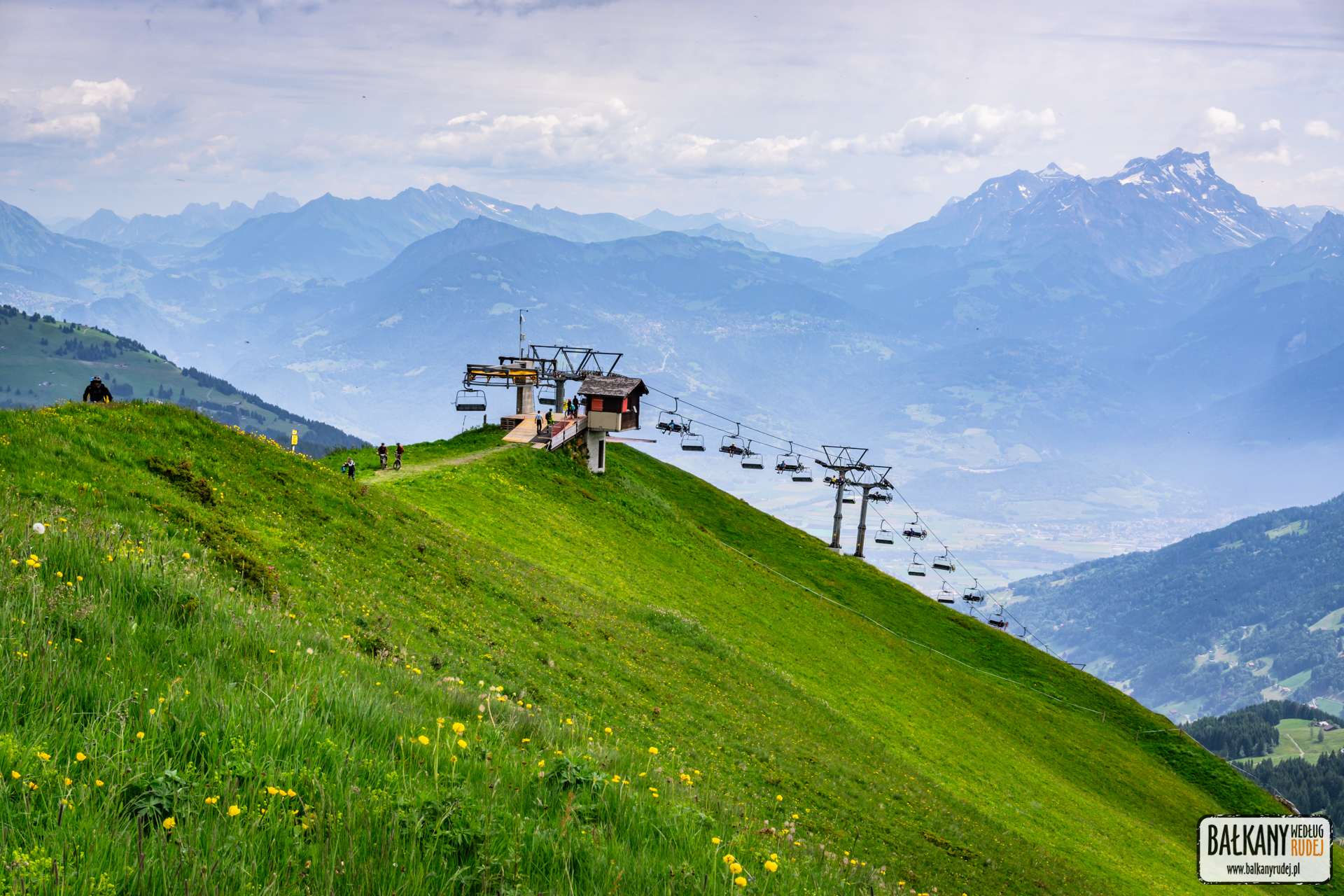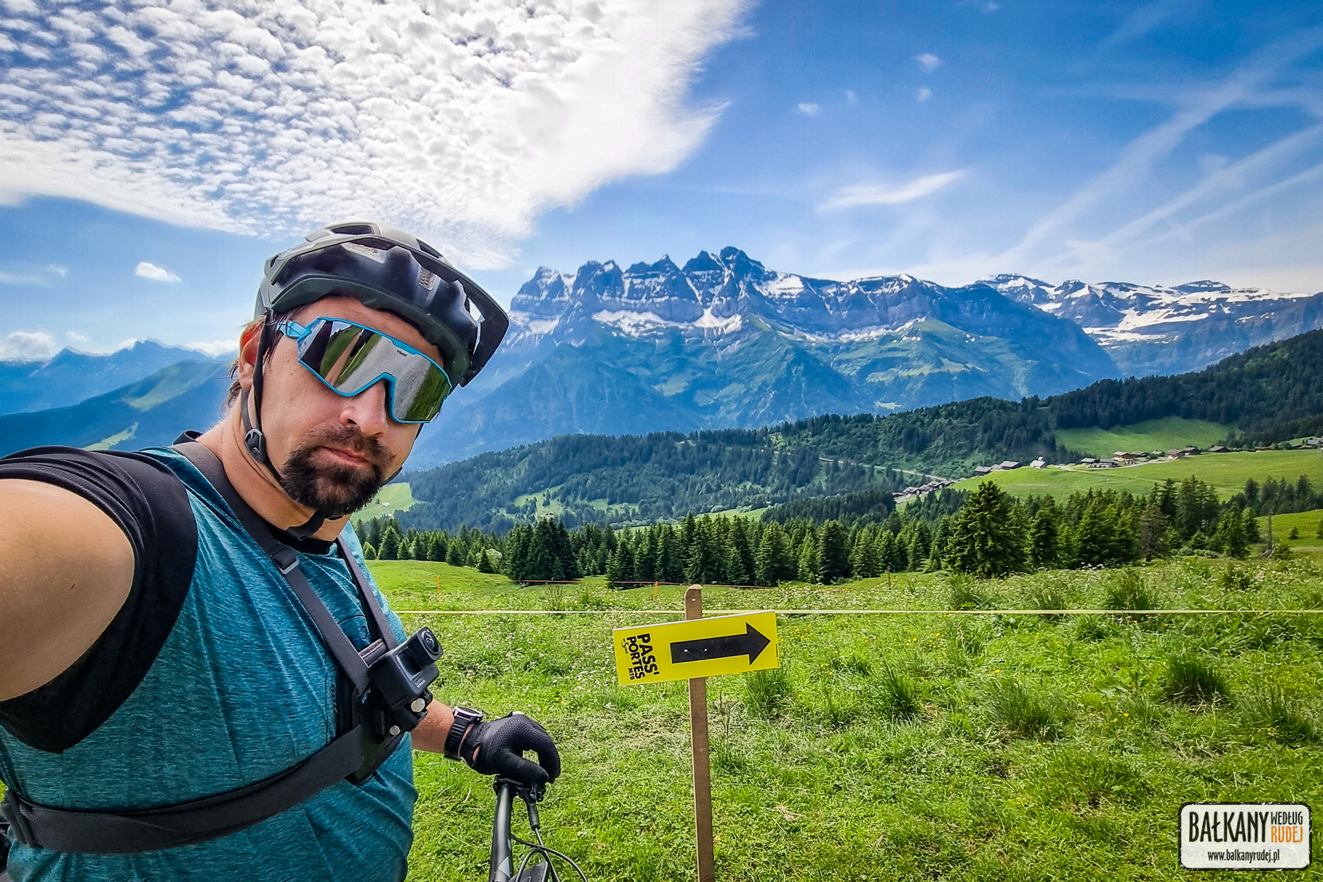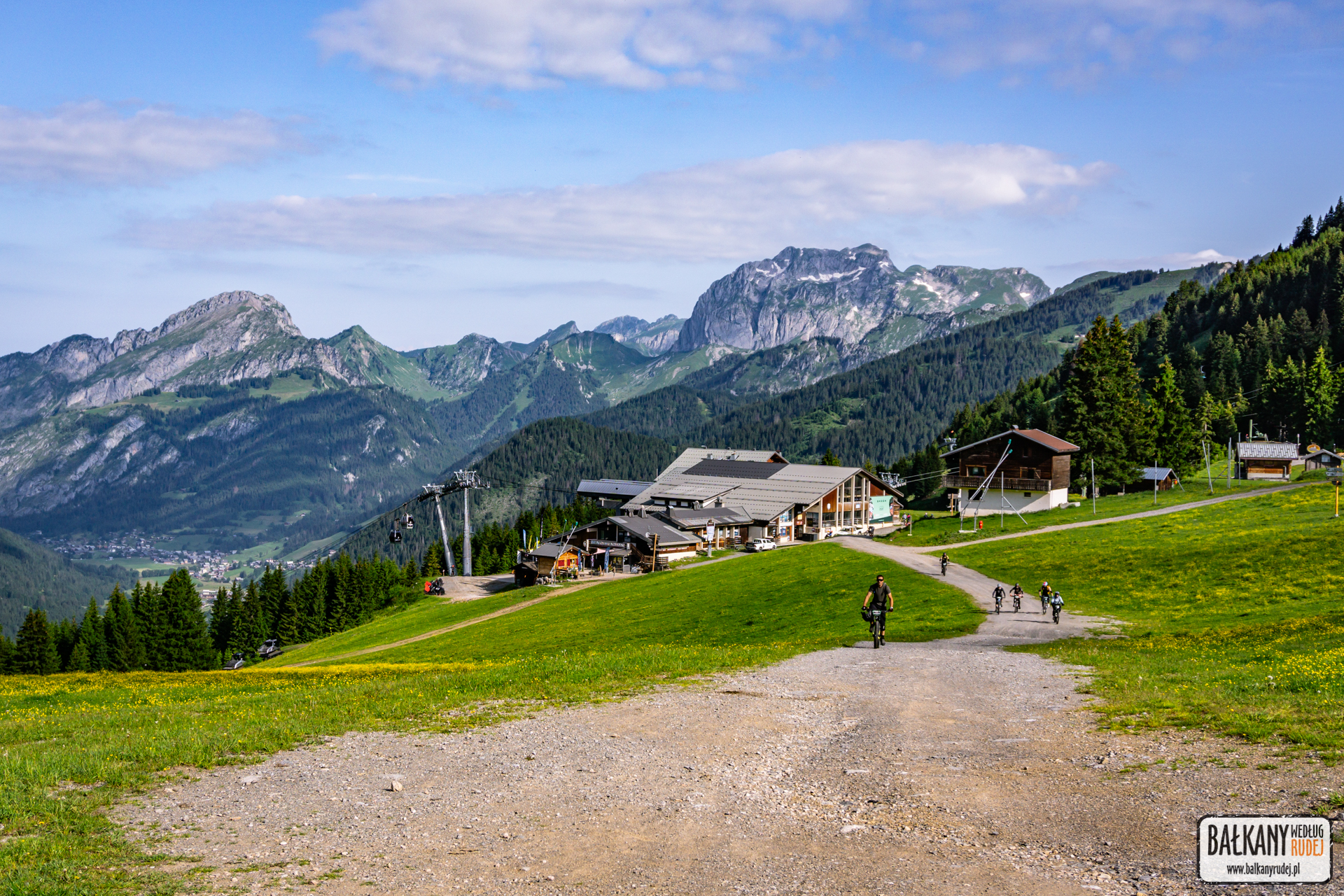 Biorąc pod uwagę wydłużone godziny i główne podjazdy załatwione przez wyciągi początkowo myślałem, że będę w stanie zrobić całą pętle pierwszego dnia. Z samego rama, w piątek, zjawiłem się w Chatel, skąd rozpocząłem swoją przygodę z pętlą Pass Portes MTB. Szybko okazało się jednak, że zapowiadania piękna pogoda przyciągnęła niezłe tłumy i niestety już rano musiałem odstać swoje w „kolejce do kolejki”. Na szczęście transport rowerzystów mają tu opanowany do perfekcji i wszystko poszło sprawnie. Z gondoli Super Chatel czekał mnie podjazd na granicę ze Szwajcarią, a później niesamowicie widokowe single przeplatane krótkimi zjazdami asfaltem do Morgins.