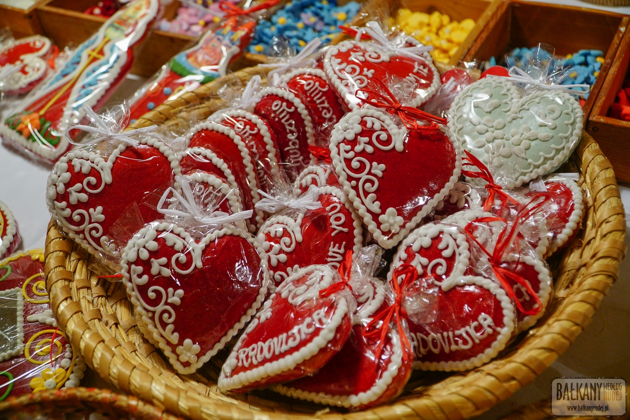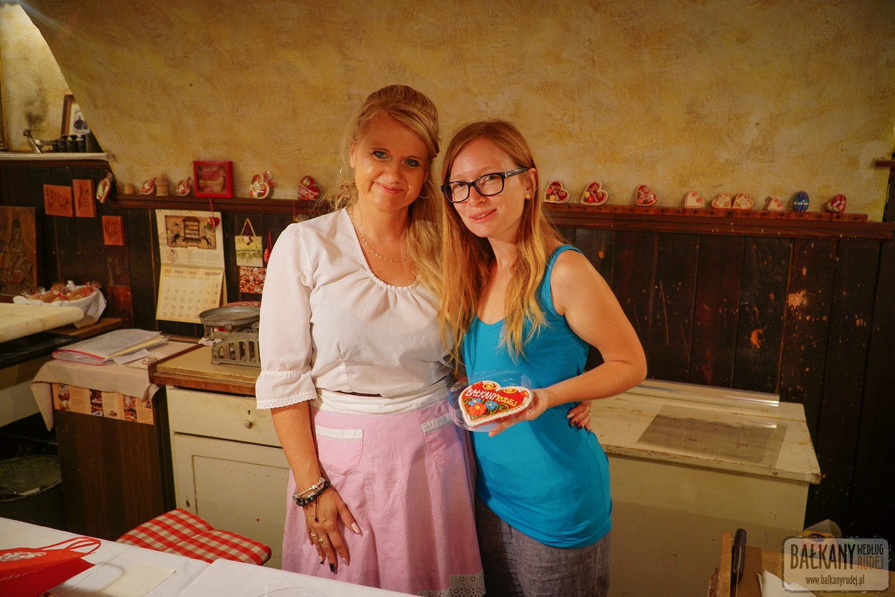 Następnie udajemy się do Muzeum Pszczelarstwa. Generalnie Słowenia ma bardzo bogatą tradycję związaną z pszczołami i produkcją miodu. Słoweńscy pszczelarze dość znacząco przyczynili się do rozwoju technik pozyskiwania miodu. Muzeum przybliża historię lokalnego pszczelarstwa, ale przede wszystkim gromadzi dość pokaźną ilość pięknie zdobionych paneli stanowiących część uli. Głównie malowano na nich motywy religijne, ale mnie najbardziej zachwyca ten z dwoma kotami (nie da się ukryć – jestem kociarą), a także z motywami roślinnymi. Po wizycie w muzeum wracamy do Pensjonatu Lectar, gdzie spędzamy dłuższą chwilę w Muzeum Piernika, które tak de facto stanowi małą linię produkcyjną. Powstające tu charakterystyczne pierniki w kształcie serca są cudownie zdobione. Gdy obserwowaliśmy pracę jednej z pań, która tworzyła na nich wzory z kwiatów, wydawało się, że jest to dziecinnie proste. Nawet miałam propozycję, by stworzyć mój osobisty pierniczek, ale doszłam do wniosku, że byłby wyjątkowo szkaradny, bo moje umiejętności plastyczne są gorzej niż złe. Dlatego jednak poprosiliśmy mistrzynię piernikowych dekoracji, aby przygotowała jeden egzemplarz specjalnie dla nas.