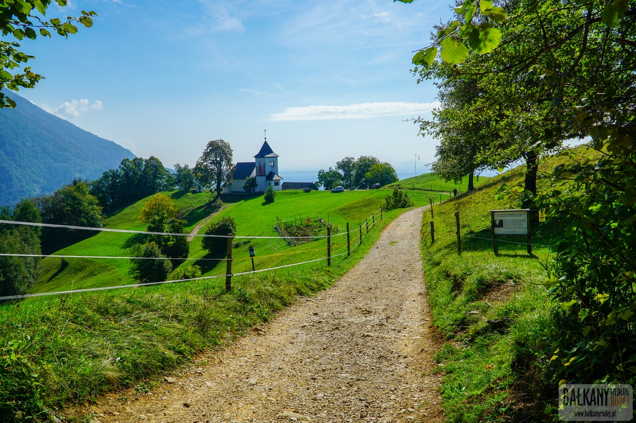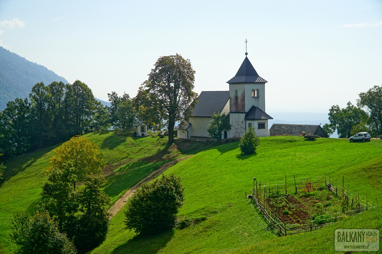 Zanim nieco lepiej poznamy Begunje na Gorenjskem udajemy się powyżej miejscowości, ku charakterystycznemu wzgórzu z kościółkiem. Z miasteczka prowadzi tam szlak pieszy, my jednak z racji ograniczonego czasu jedziemy samochodem. Można tam dotrzeć jeśli ma się auto z napędem 4×4, gdyż droga jest stroma i momentami dość wyboista. Najpierw wybieramy się do znajdującego się nieco dalej schroniska Sankaška koča. Trafiamy tam na dość sporą grupę dzieciaków. Wiecie, u nas raz w miesiącu dzieci w ramach lekcji idą na wycieczkę w góry. Dziś akurat mają wycieczkę razem ze swoimi dziadkami. Dzięki temu łączą się dwa pokolenia, mogą się od siebie uczyć i spędzić nieco więcej czasu razem, przy okazji korzystając z pięknej pogody i obcując z przyrodą. Mój syn też jest dziś na takiej wycieczce. W trakcie dalszej rozmowy okazuje się, że syn Saso ma na imię Rudi, ale wszyscy wołają na niego Ruda 😀