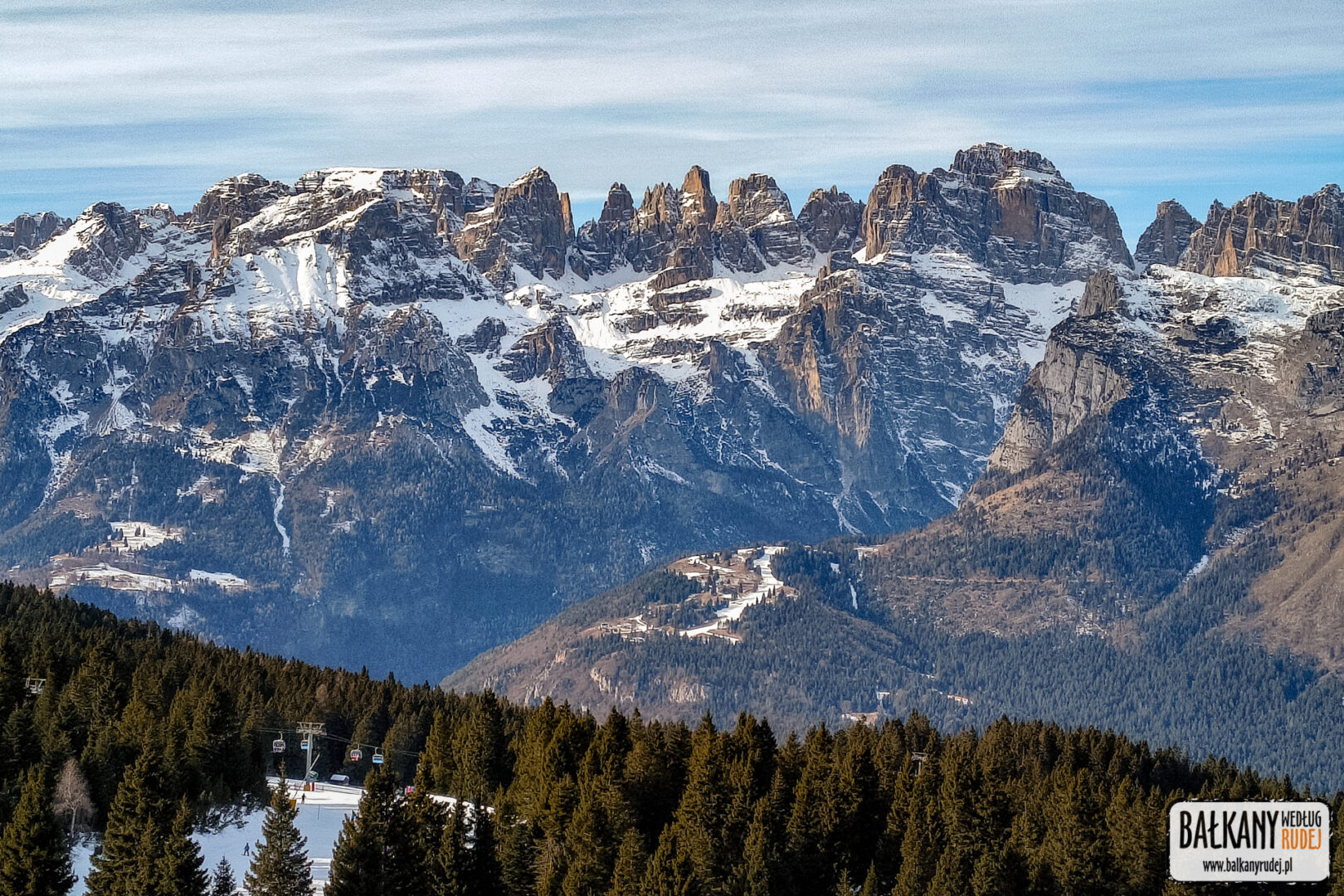 Choć opuściliśmy Dolomity, to tak do końca się z nimi nie rozstaliśmy. Przede wszystkim dlatego, że Marek postanowił dwukrotnie poszusować w tamtejszych ośrodkach narciarskich. A do nich znad jeziora Garda nie jest wbrew pozorom tak daleko. Do najbliższych – jakaś godzina/półtorej jazdy samochodem. Za drugim razem mu towarzyszyłam i miałam okazję zaliczyć całkiem przyjemny, lekki i widokowy trekking.