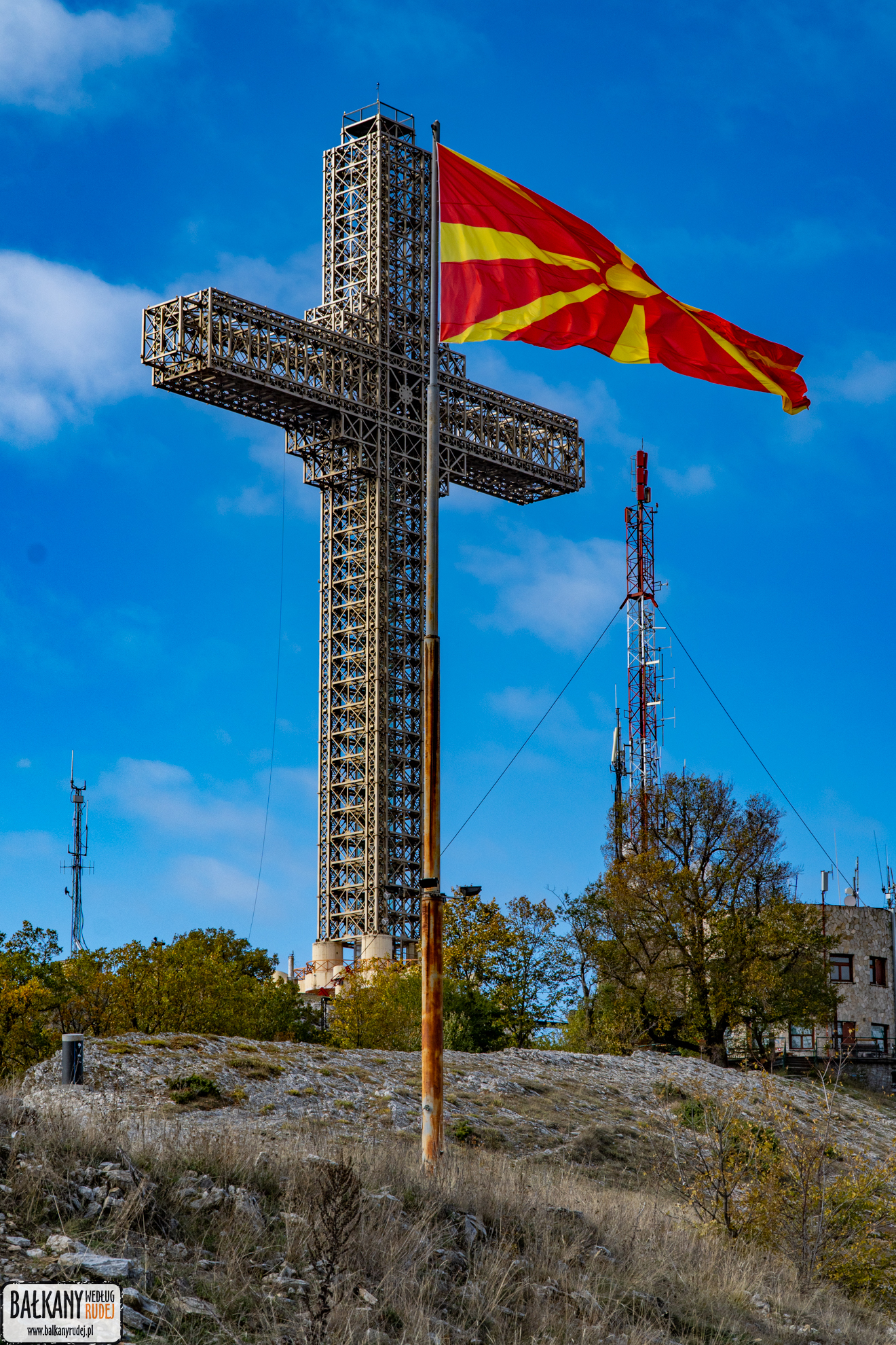Nasz tygodniowy pobyt w Skopje nie mógł się obyć bez… wycieczki w obrębie Vodno. W dobie pandemii było to odrobinę utrudnione, ponieważ od 2020 nie działa kolej gondolowa na Krstovar. A jeśli nie działa kolej, to… nie jeździ autobus na Sredno Vodno, gdzie znajduje się dolna stacja. Stąd też zdecydowałyśmy się na przejazd taksówką z centrum na Sredno Vodno (300 MKD). Stamtąd wyruszyłyśmy bezpośrednio na szczyt, jednym ze szlaków biegnących od wschodniej strony masywu. Po ok. 1 godz. 20 min stanęłyśmy pod Milenijnym Krzyżem. Stamtąd zeszłyśmy do widokowej wiatki na zachód od szczytu. Później wróciłyśmy pod krzyż i udałyśmy się wzdłuż wschodniego grzbietu ku Markovi Kuli. Z ruin zeszłyśmy na Sredno Vodno przyjemną, trawersującą ścieżką pieszo-rowerową. Ostatnim etapem wycieczki była trasa do centrum Skopje. Tu obrałyśmy szlak ze Sredno Vodno, który kończy się mniej więcej na wysokości hotelu Panoramika. Później czekał nas spacer bezpośrednio do centrum miasta. W sumie pokonałyśmy prawie 18 km, w czasie 6 godz. 30 min.