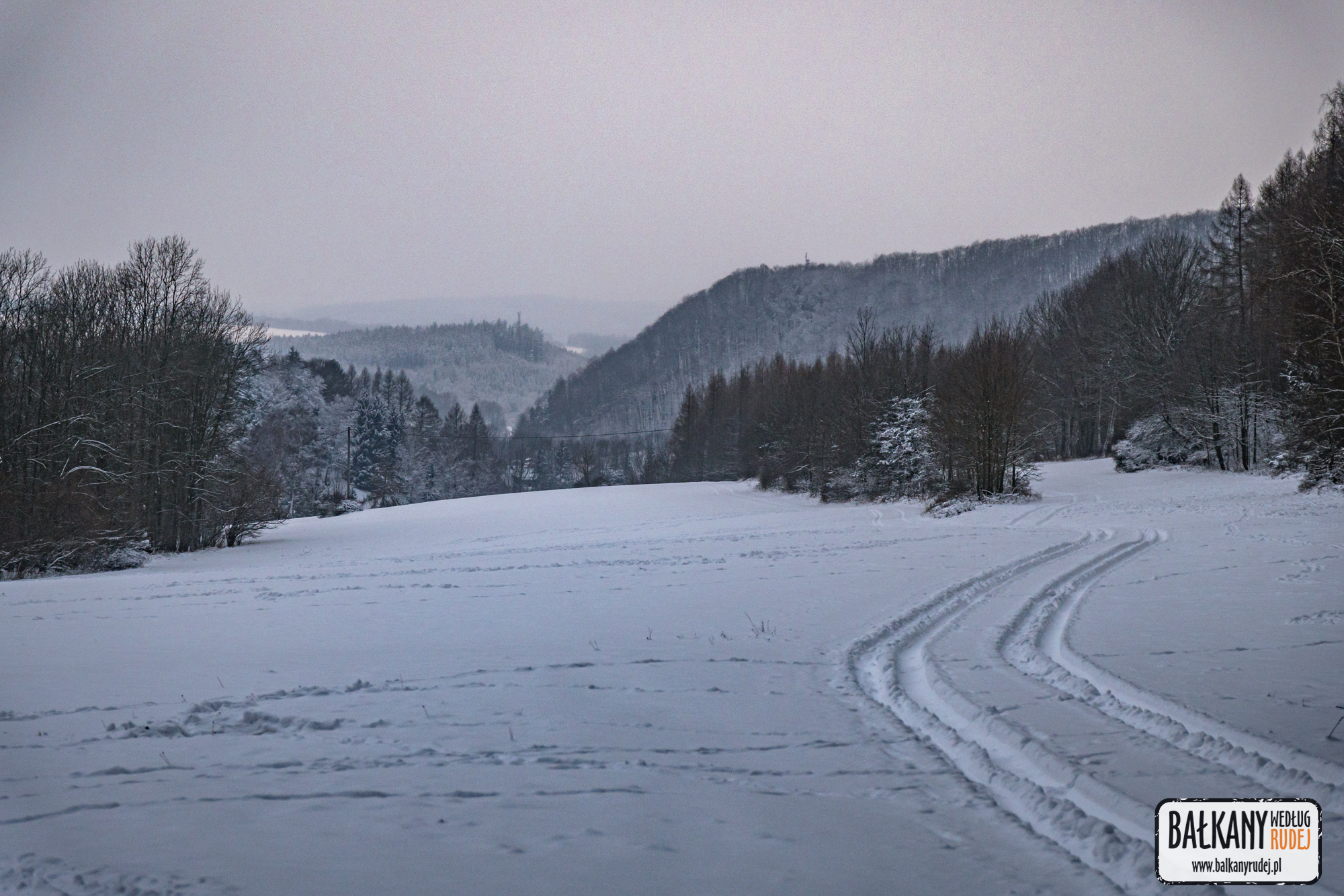 Po opuszczeniu Błędnych Skał czerwonym szlakiem zeszliśmy do Zielonej Drogi. Tam czekało nas trochę torowania, gdyż trasa biegnąca ku Hraniční přechod Machovská Lhota / Błędne Skały był średnio przetarty. Po przejściu na czeską stronę nie było lepiej. W pewnym momencie w ogóle gubimy oznaczenia szlaku. Trzymamy się głównie niebieskich oznaczeń, które przeprowadzają nas to przez polską, to przez czeską stronę. Momentami nawet odsłaniały się widoki, których generalnie na całej tej trasie nie brakuje. Dlatego polecamy ją robić przy lepszej aurze pogodowej. Do Pstrążnej zeszliśmy przez Hraniční přechod Končiny. Kiedy dotarliśmy do auta, zaczął zapadać zmierzch.